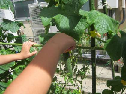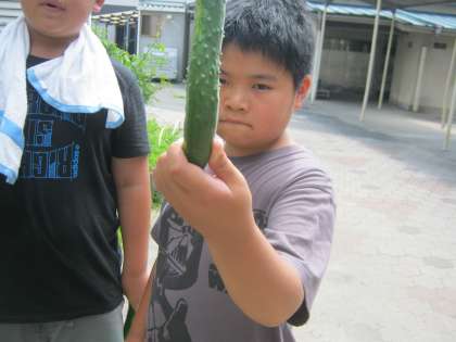 そらいろ畑では毎日きゅうりが3本ぐらい採れます。