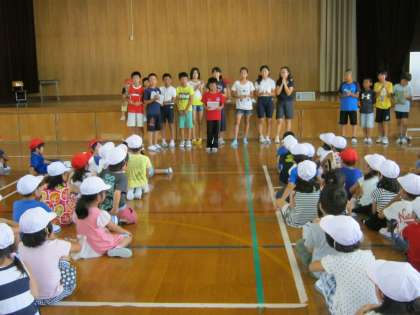 今日はドッジボール大会がありました。体育館に整列してから体育委員のお兄さん、お姉さんから説明をしてもらいました。力いっぱいボールを投げたり,ボールを譲り合ったりするなど楽しんでゲームする姿が見られました。