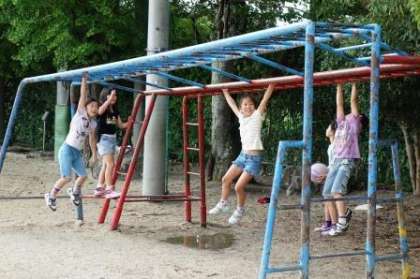 次に,ウンテイの棒を2つ3つとばしに,渡っていく技術と体力に脱帽。今まで見たことがないほど,ダイナミックにぶら下がりながらウンテイをわたっていきます。