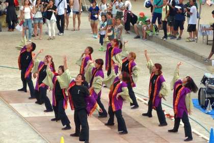次は,西賀茂児童館のミュージックドラムの演奏,そして佛教大学よさこいサークル「紫踊屋」の踊り。