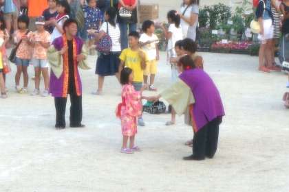 よさこいの方は,迫力あります。カッコイイー。何より若さを感じます。いいなーと思いつつも,(昨日の部活体験のこともあるので)しんどそうです。観客の皆さんにも教えていただきました。小さな子どもたちも楽しそうに踊っていました。
