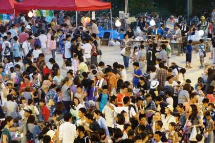ホコ天のような賑わいです。写真だけなら,ここがどこかわからないでしょう?