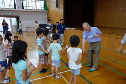 さっきまで,上手に飛ばせていたのですが,緊張のためか実力が発揮できない子どももいるようです。肩に力が入ってしまうんですねー。