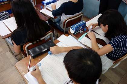 今日は,3年生の研究授業が5時間目に行われました。教員も,子どもたちにわかりやすく教えるための勉強をしているのです。実際に授業を行い,校内の他の教員に見てもらって,指導の在り方を議論します。