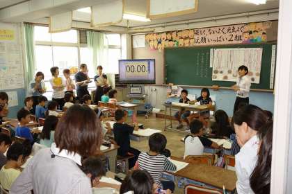 子どもたちは,大勢の教職員に囲まれての授業で,緊張していたと思いますが,とても意欲的に学習に取り組めていました。