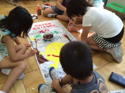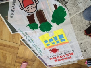 おはぎを食べて元気がついたのか,旗づくりにも元気に挑戦していました。