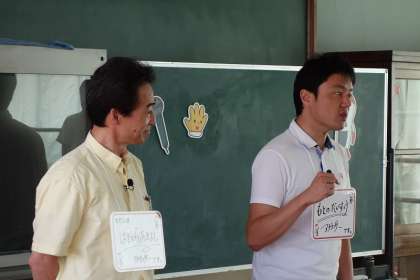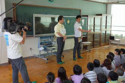 今日は,3年生対象に,ytvより 萩原アナウンサーと本野アナウンサーにおいでいただき,「物語まるわかり教室」を開きました。プロのアナウンサーの方が来られたということで,子どもたち大興奮。
