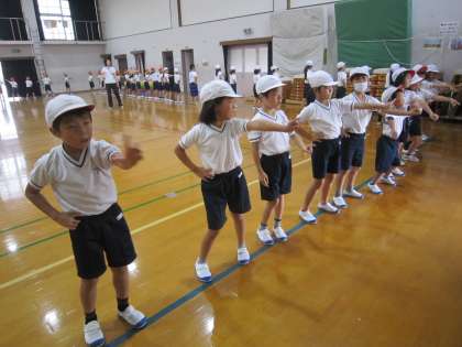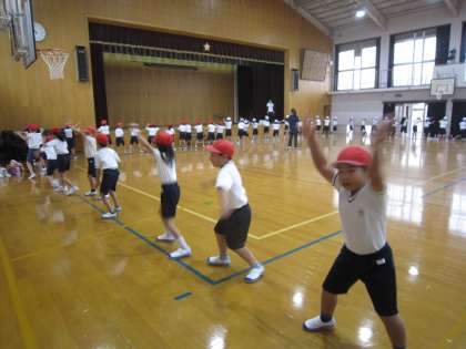 今日は雨がふっていたので,体育館で踊りの確認をしました。大分子どもたちも覚えて,曲のタイミングを,自分ではかって動けるようになってきました。あとは笑顔で,楽しんでおどることを心がけてがんばっていきたいと思います♪