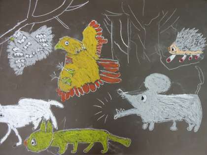 図画工作ではお話の絵を描きだしました。