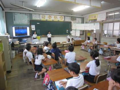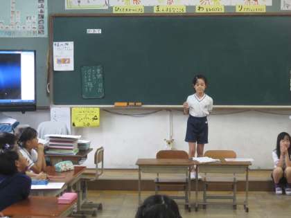 朝の会の一分間スピーチで,「大すきなもの,教えたい」をスピーチしています。どの子どもも原稿をしっかり覚えて発表しています。大すきな友だちのこと,家族のこと,動物のこと,先生のこと,とっても心温まるスピーチです。