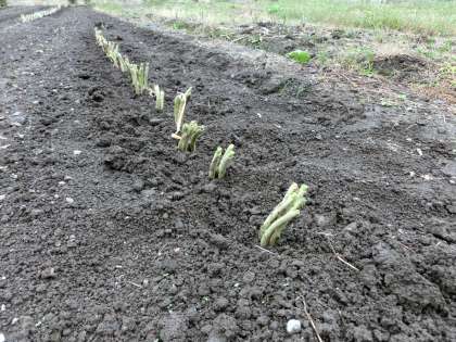今朝の様子ではきれいな緑の線のように芽を出していました。