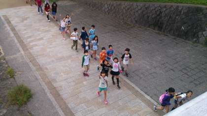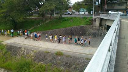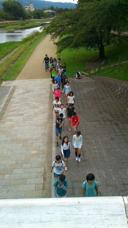 北山駅で電車を降りて,再び歩きです。なんか楽しそうですね。鴨川西岸を歩きます。