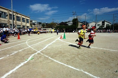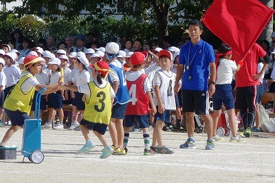 バトンの受け渡しが,小さな子供たちにとっては,大変難しいものなのです。