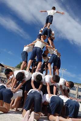 男子の方は,少し心配でした。途中で,崩れてしまったのですが,再度挑戦して見事に立ち上がりました。一度失敗すると,気持ちが切れてしまい,再度挑戦しても立ち上がらないのですが,男子のタワーチームの執念のようなものを感じました。