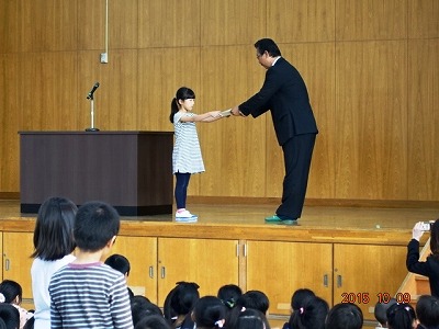 終業式の後に,図工や書写で入賞した子どもたちの表彰をしました。
