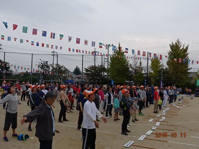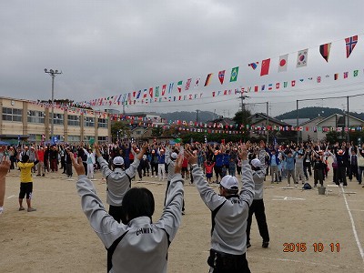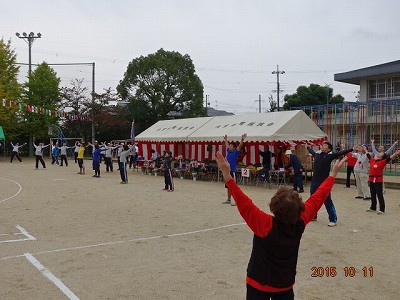 さー,怪我のないよう,しっかり準備体操です。大宮校の教員が前に出て見本?を。