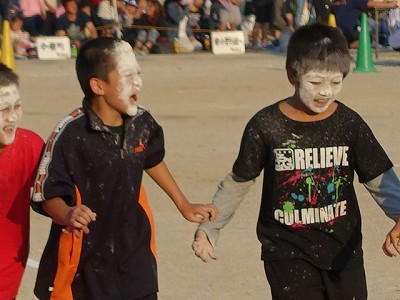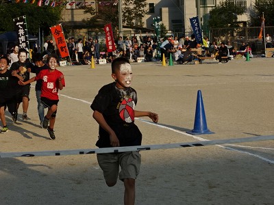 真っ白けの顔をしたのが,全速でゴールを目指すのは,ある意味怖いものがあります。オカルト映画で,真っ白けの顔の子どもがよく出てきます。