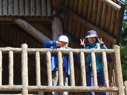 砦に登っている子どもたちを発見。