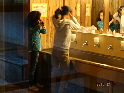 さすがは女子。朝から身だしなみに気を使っています。