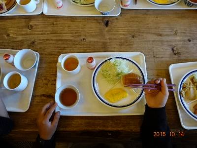 ご飯にふりかけをかけて、和洋折衷の極み は、5年生担任のN先生の作品でございます。桜漬けが、彩りを添えており、京の雅を表現しています。