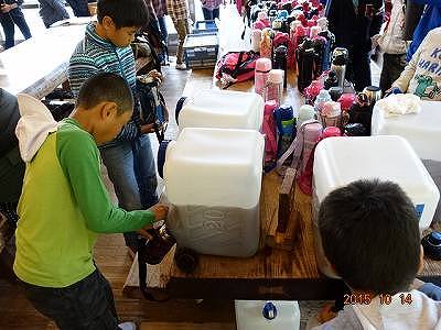 今日は、段取りの都合で、食事係ではなく、各自自分の水筒にお茶を入れました。