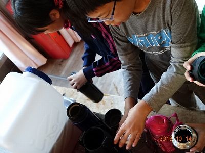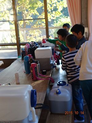 再び、食事係参上。手際がいいですね。水筒に入れる量も、だんだんわかってきたようです。みんな、クルクルとよく仕事をしてくれます。家に連れて帰りたいくらいです。