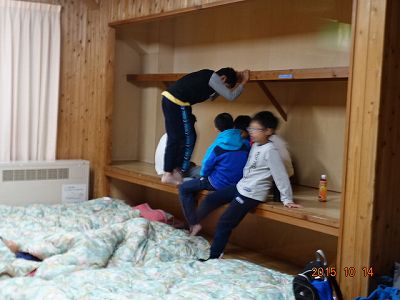 部屋によって、子どもたちの行動が微妙に違います。押し入れに集合して、何の相談でしょうか?
