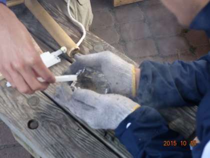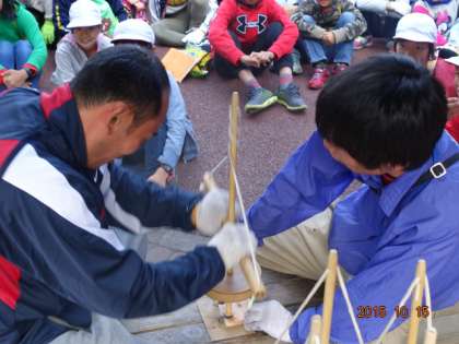 火起こし体験で、Y先生がモデルとなって説明がありました。昨年まで本校に織られたU先生が、山の家でインストラクターをされています。