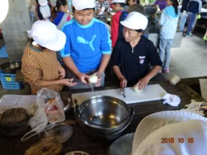 さあ、野外炊飯の準備です。カレー作りの挑戦。