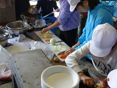 男子は、野菜の皮むきなどに専念している(さされている)ことが多かったようですが、中には、いい手つきで野菜を切っている男子もいましたよ。