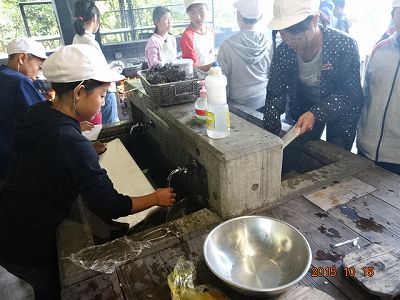 おー、まな板などをすでに洗い出している子たちがいるぞ。使わなくなったら、すぐに洗う! 手慣れています。