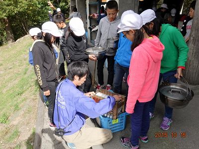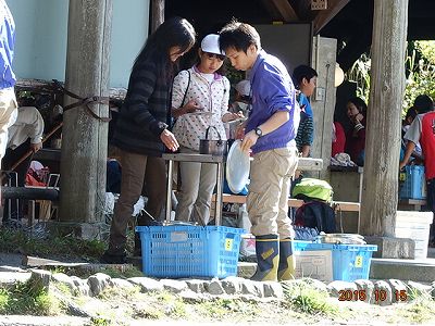 洗い終わったら、かごに入れて、山の家の先生方のチェックを受けます。一発合格は、なかったように思います。