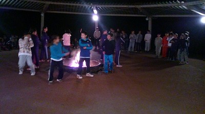 デジカメのバッテリーが切れ,パニクッていたので,ファイヤーの状況がよくわからなくなりました。クラスの出し物だと思うのですが。携帯で写真を撮ったので,画像が悪くなっています。