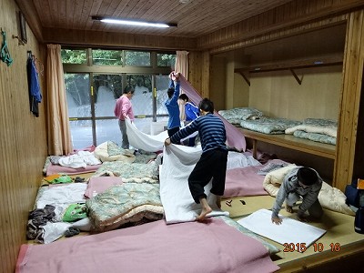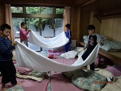 今日のお目覚めは,とっても良好。山の家最終日なので,退所の準備や荷物の片づけ,寝具の整理,掃除などと大忙し。