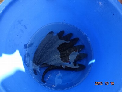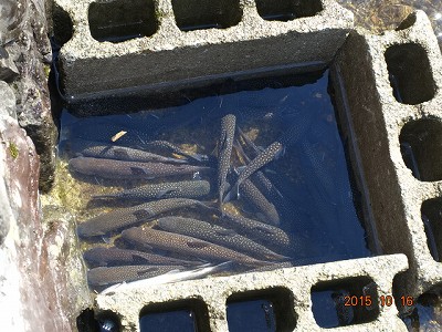 「校長先生,ちょっと」と呼ばれていくと,捕まえた魚たお利口に整列しています。