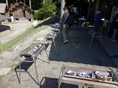 その頃,炭をおこして,魚を焼く準備が完了しました。子どもの数が多いので,たくさんのバーベキューコンロを出しました。
