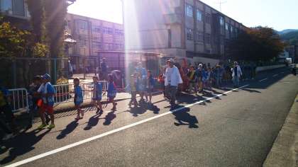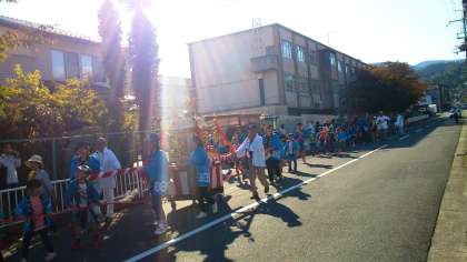 なんと,5キロメートル以上の教理を歩くそうです。今日は,暑いので大変です。でも,大きな掛け声とともに,神輿が動き出しました。