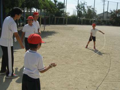 一人ずつ飛んだり,順番に縄を回したりしました。
