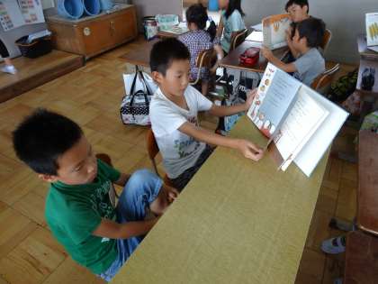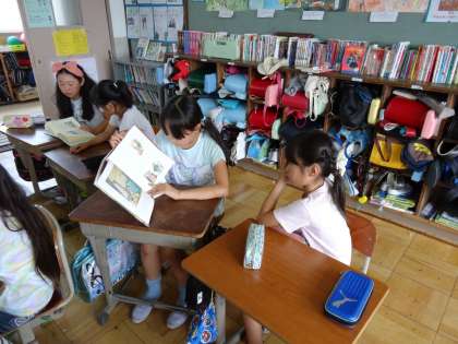 7月3日の縦割り活動では,5年生は,2年生の為に本を選びました。