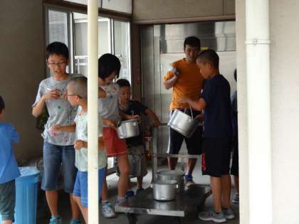 給食委員会は,給食を食べ終わる1時には,給食室前に立ち,返却に来た当番の子のお手伝いをしたり,後片付けをしたりします。何クラスも来たときは混雑するのですが,行列にならないように声をかけてサポートしています。