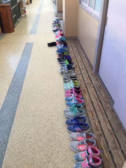 ちなみに最後の写真は教室の外の様子です。何か言ったわけでないですが,きれいにそろえられています。素敵な6年生です。
