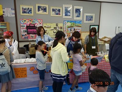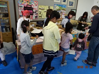 隣の部屋に入ると,ドーナツ,飲み物,おにぎりのコーナー。おっと,私の大好きなコロッケも売っているではありませんか。すでに,行列ができているのですが,コロッケのためなら,並びましょう。売り切れにならないか,心配で心配で。係のお母さんに,「売り切れへんかな?」と聞きますと,「大丈夫です。まだあります」。