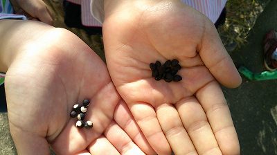 朝顔(右)の種とフウセンカヅラ(左)の種だと教えてくれました。
