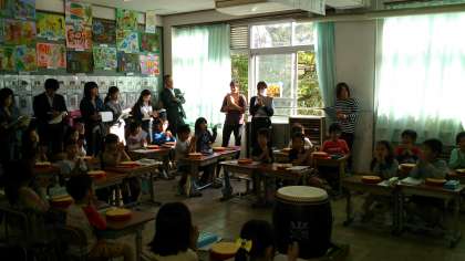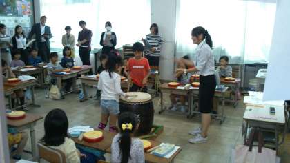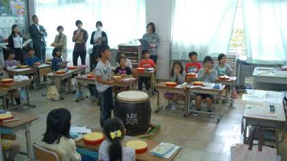 太鼓のリズムに合わせて,掛け声を作っていくのです。