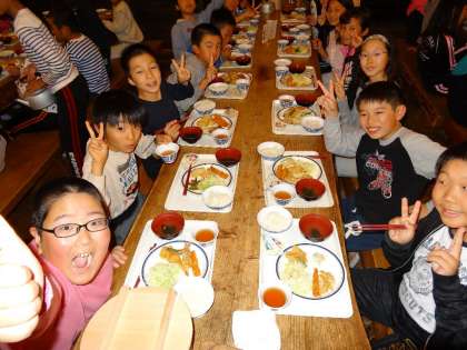 魔法使いの男の子で有名な映画のように,長く立派な木のテーブルに,グループごとにすわって「いただきます!」と言ってから食べ始めました。バイキング形式なのですが,事前に栄養をバランスよくとることの大切さを学習しているためか,「野菜もたべないと」など体の調子を整えるビタミンを意識したり,好きなものの取りすぎに気をつけたりしてもりつけていました。食べ終えたあとも,自分で食器をはこび,返却口でさっと水で流すのですが,丁寧に手で洗おうとする子もいました。ふだんから,お手伝いしているのかなと,とっても関心です。