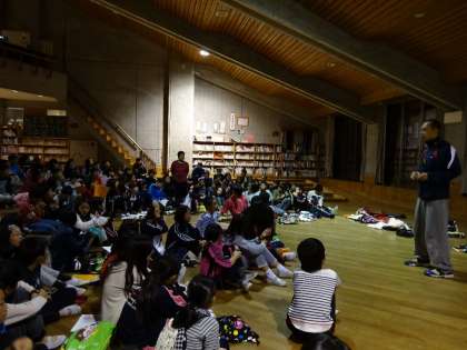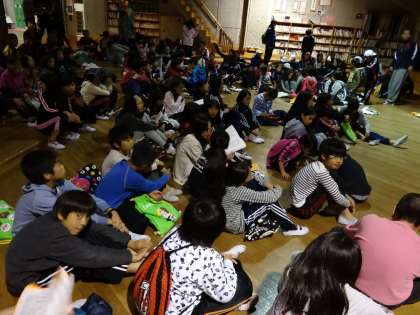 山のそばなので,京都市内の明るさの影響を受けにくく星空観察には適しているのですが,雲があっという間に空をおおってしまい,オリエンテーションホールで星空DVDの鑑賞をしました。三日間の間で夜空を眺めたときに,ビデオの内容を実際に見られるといいのですが。