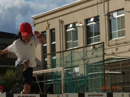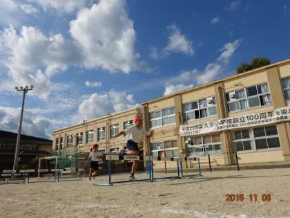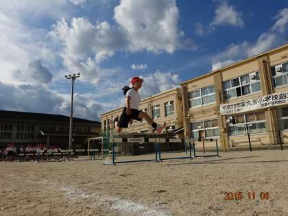ハードル走では,「跳ぶ」というよりも「またぐ」というイメージで指導します。