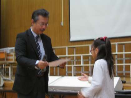 芸術の秋ということで、以前に描いた絵が表彰されました。ちょっと恥ずかしかったようですが、代表で賞状をいただきました。
