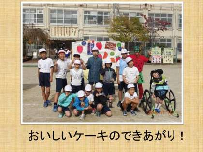 おいしそうなケーキができたところを,想像してください。みんな満足気な顔をしています。