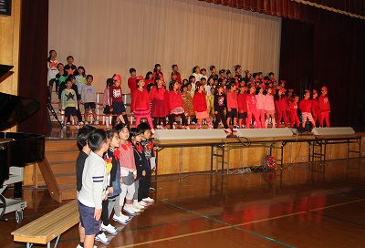 2年生は,国語の教科書にある「スイミー」を演じました。